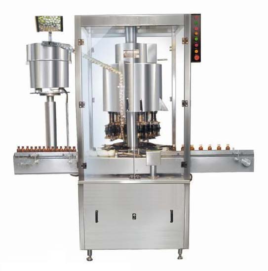 The Automatic Multi Head Ropp Screw Cap Sealing Machine or sealing machine is available in 4 head, 6 head and 8 head options. This machine is suitable for capping of plastic screw caps too. Very efficient, the output of this machine ranges anywhere between 100 bottles per minute on the 4 head model to about 200 bottles per minute in 8 head model. This capping machine is ideally used in the pharmaceutical, liquor, edible oil, mineral water and other such industries. There are also specialized machines for capping of wine bottles. Low noise and low power consumption, this machine is not just reasonable to buy but quite affordable to maintain too.